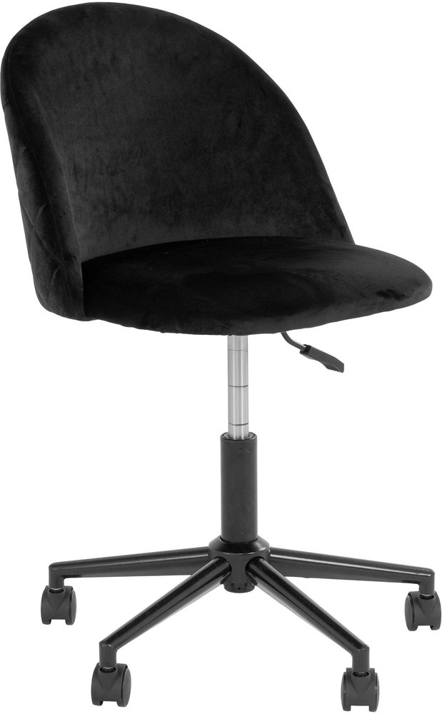 Skrivbordsstol i svart velour med svarta ben.