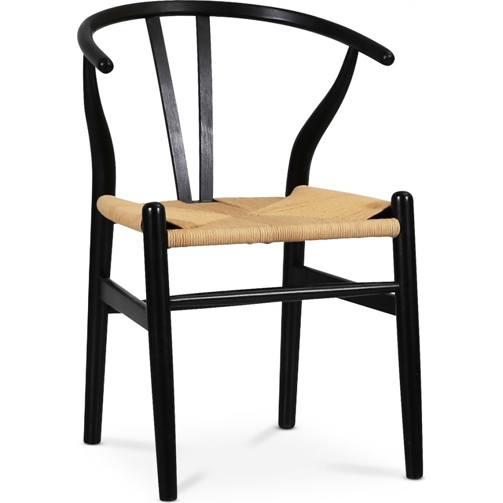 Material: Svartbetsad ekfanér (bord), FSC-certifierat bokträ och papperssnöre (stolar)