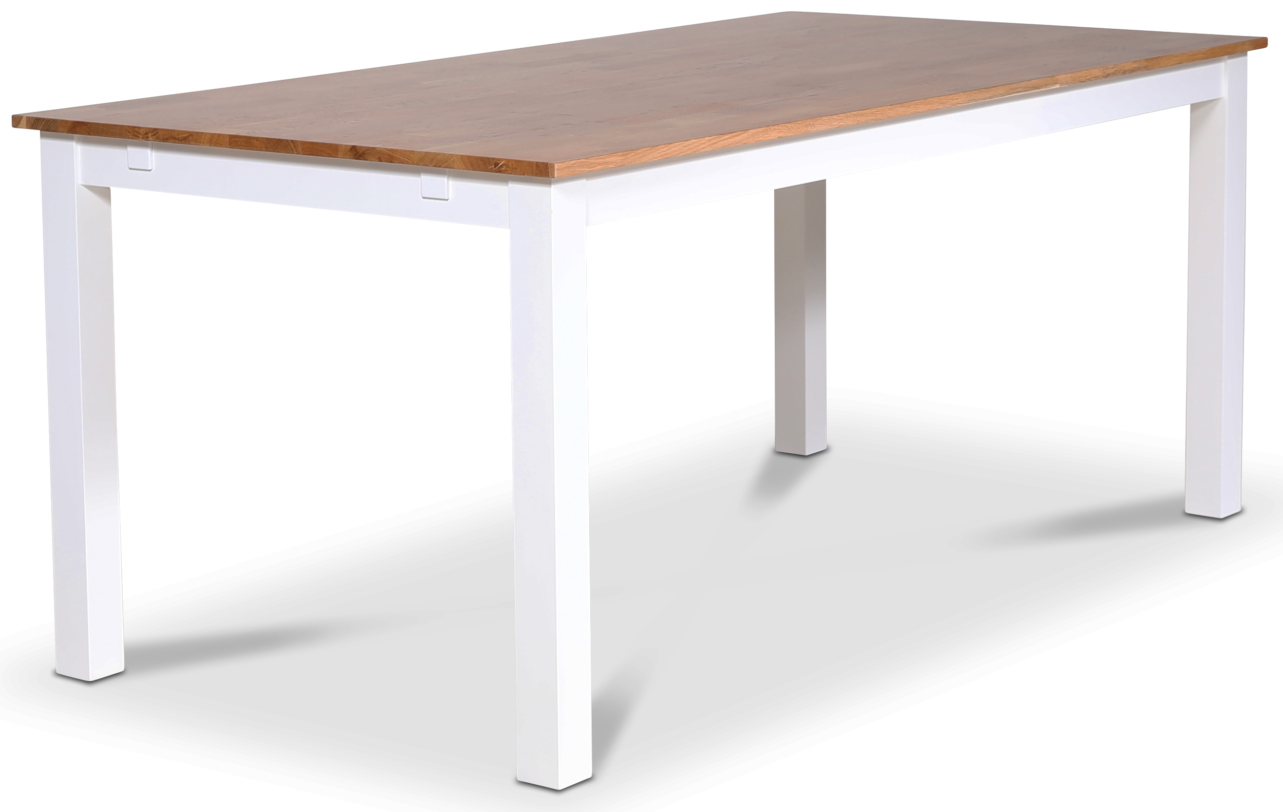Dalsland matgrupp med stort och bra matbord med toppskiva i oljad ek och vitlackat underrede. 6 st Dalsland pinnstolar i en läcker gul lack (RAL1032)