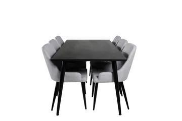 Dipp Matgrupp 180 cm Rektangulär med 6 Velvet Deluxe stolar, Svart/Guld