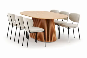 Peyra Matbord 200 cm Oval med 6 Gemmiano Stolar, Natur