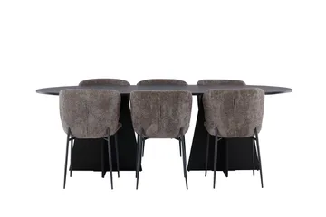 Stone Matgrupp 220 cm Oval med 6 Polar stolar, Svart