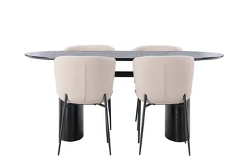 Isolde Matgrupp 180 cm Oval med 4 Lilja stolar, Svart