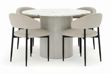 Admira Matbord 106 cm Runt Marmor med 4 st Valera Matstol, Beige / Marmor