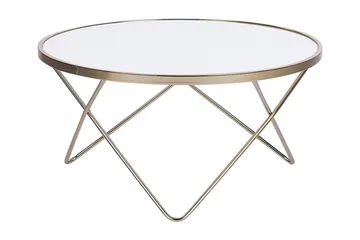 Meerah Soffbord 80 cm Runt Marmormönster, Glas/Vit/Guld