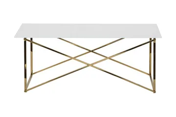 Meerah Soffbord 80 cm Runt Marmormönster, Glas/Vit/Guld