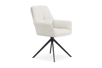 Karol Matstol med armstöd, Vit Bouclé / Metallben Svart