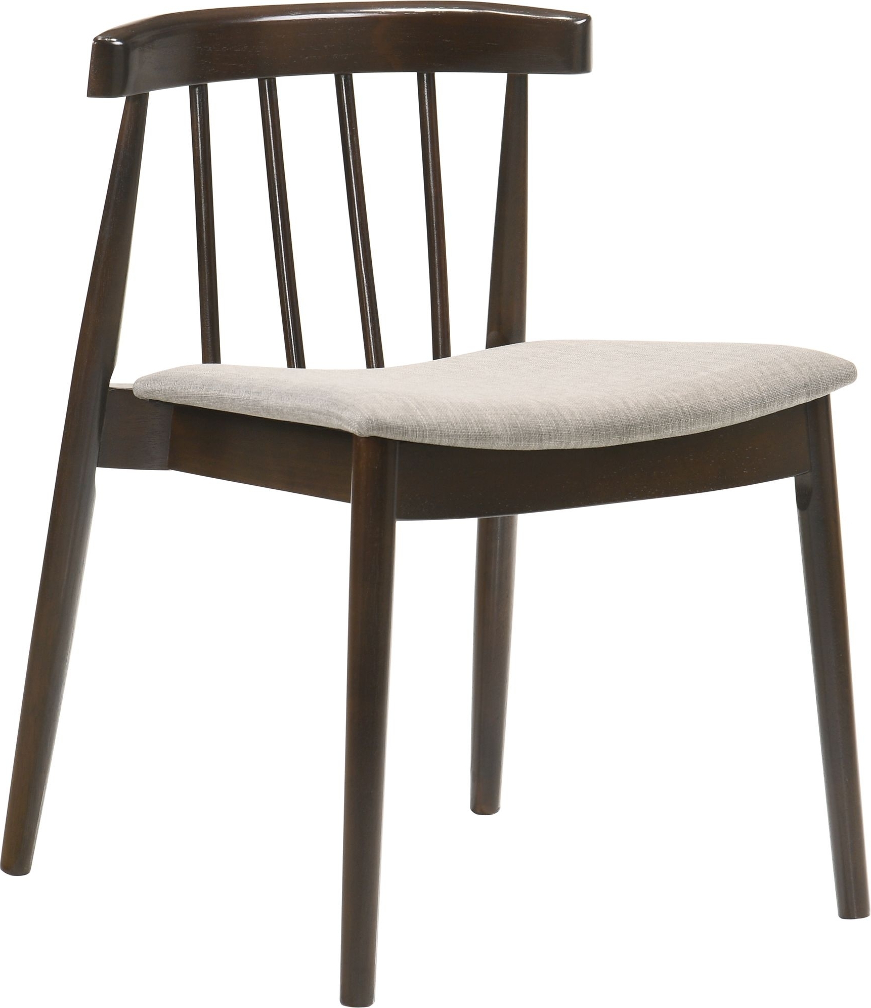 De tillhörande Florence-stolarna är tillverkade i massivt trä med vacker valnötsbets. Det välvda ryggstödet med dekorativa ribbor ger både karaktär och god sittkomfort, medan den ljusgrå sittdynan tillför en mjuk, modern kontrast till det mörka träet.