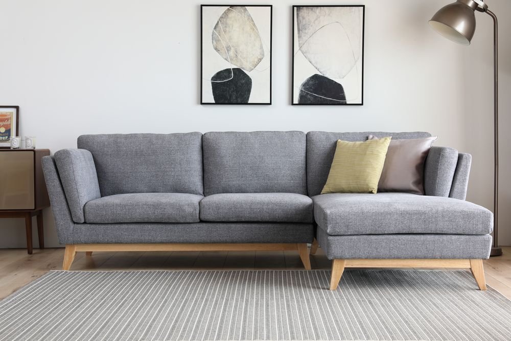 Soffa med divan grått tyg - 260 cm bred: