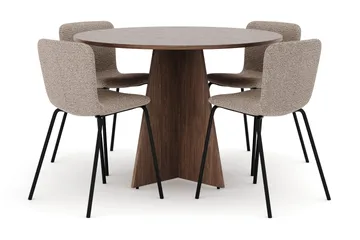 Bootcut Runt Litet Matbord Valnöt 110 cm med 4 Katy Matstolar
