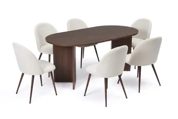 Dano Matbord 180 cm med 6 Nibe Plus Matstolar, Vit/Brun
