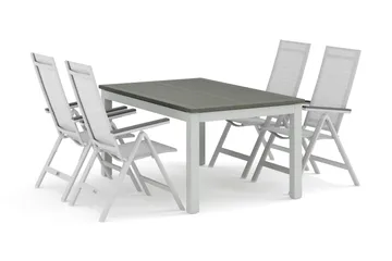 Las Vegas utomhus matgrupp förlängningsbart 152-210x90 cm med 4 Las Vegas positionsstolar, Vit