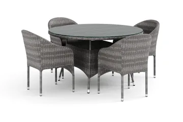 Tunis utomhus rund matgrupp 120 cm med 4 Thor Light utefåtöljer, Beige/Beige