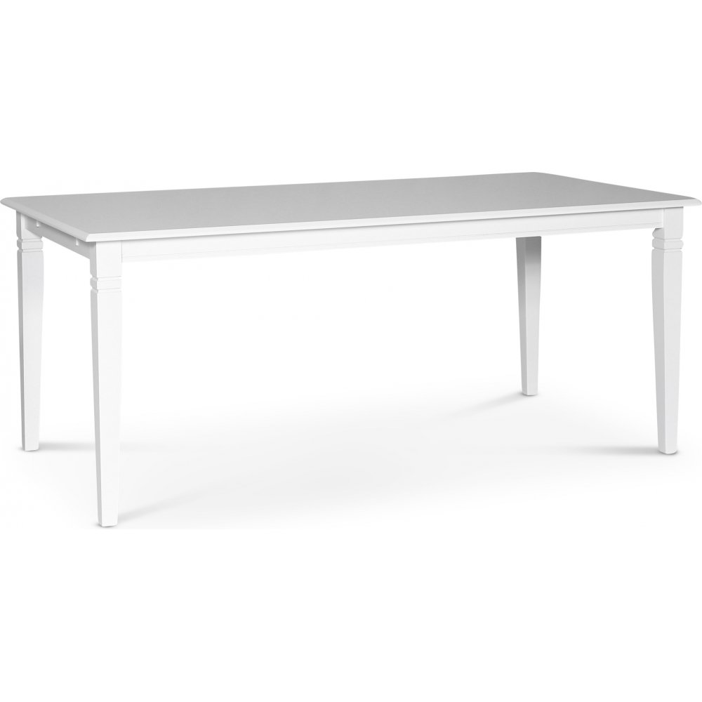 Sandhamn matgrupp Klassiskt utförande. Stilrent matbord 180x95 cm matbord med vitlackade ben och bordsskiva.