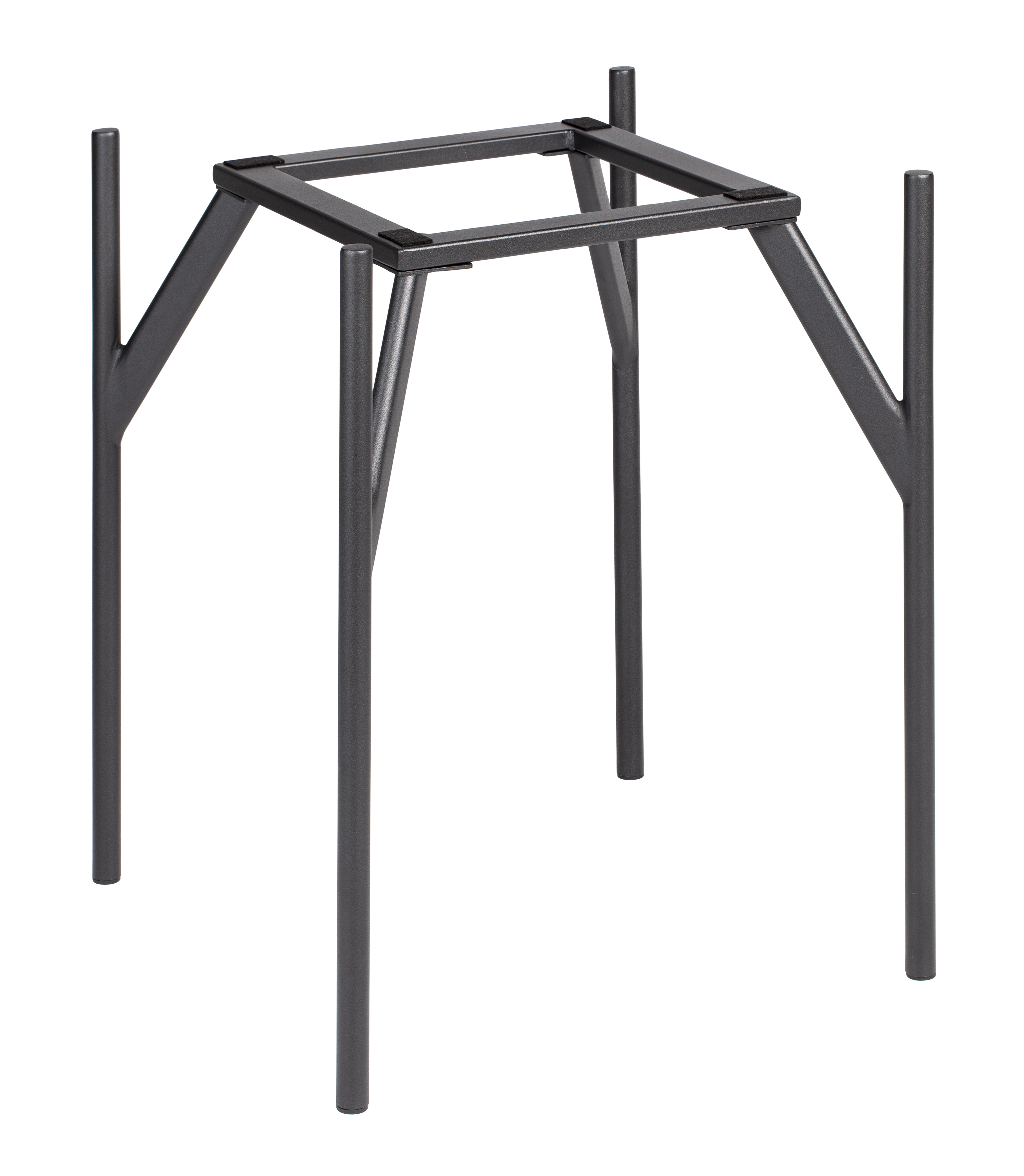 Litet soffbord 50x50 cm med en Bianco terrazzo stenskiva (Ljus botten med ljusgråa stenar i) och underrede AIR i svart metall.