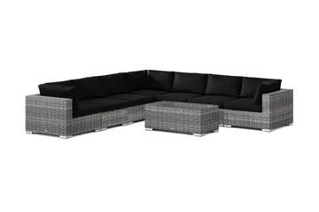Bahamas utomhus hörnsoffa 7-sits vändbar och bord med hylla, Svart