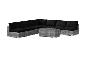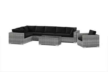 Bahamas L-formad utesoffa höger, 7-sits med bord, Svart