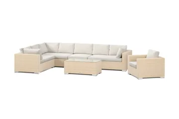 Bahamas utomhus hörnsoffa 7-sits vändbar med öppet avslut och bord, Beige