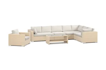 Bahamas utomhus L-soffa vänster 8-sits med fåtölj och bord, Beige