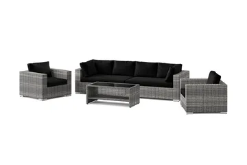 Bahamas utomhus soffgrupp 6-sits med två fåtöljer och bord med hylla, Grå