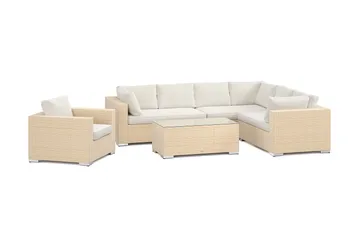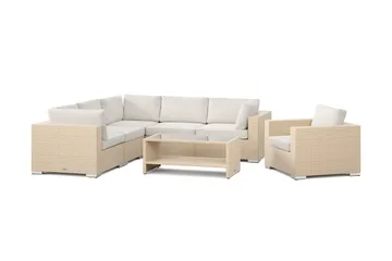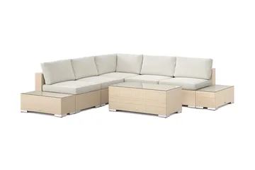 Bahamas utomhus hörnsoffa 6-sits vändbar med fåtölj och bord med hylla, Beige