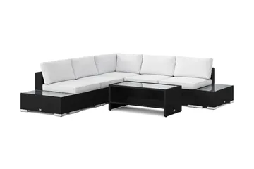 Ariany l-formad 5 sits hörnsoffa utomhus med vita dynor rektangulärt bord i alumunium, Svart