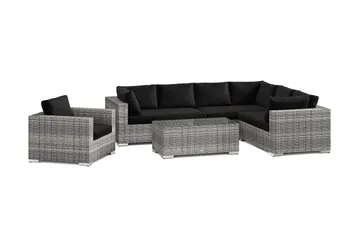 Bahamas utomhus hörnsoffa 6-sits vändbar med fåtölj och bord, Svart