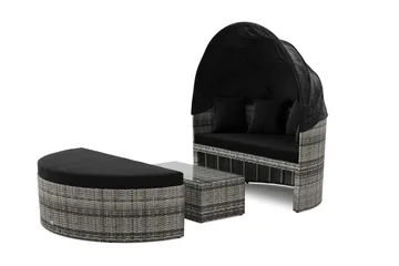 Florens Rund dubbel Solsäng med tak - Soffbord med glasskiva i konstrotting, Svart