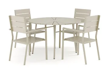 Tunis utomhus rund matgrupp 120 cm med 4 Thor Light utefåtöljer, Beige/Beige