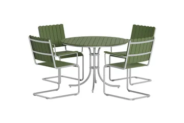 Kullaberg rund matgrupp utomhus med 4 stolar 104 cm stål aintwood, Grön