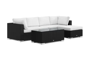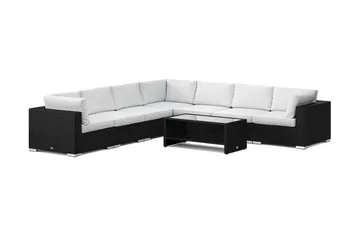 Bahamas L-formad utesoffa höger, 6-sits med bord, Svart