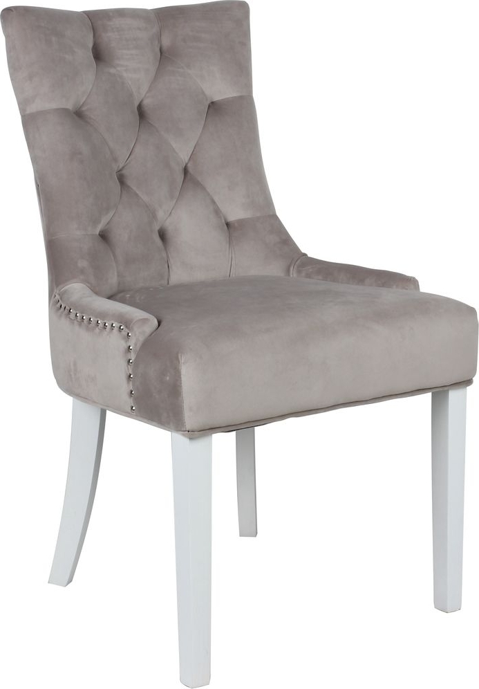 Inklusive 4 st Tuva matstolar i beige sammet med kromade nitar och ring-handtag i ryggen. Matstolaen har vitlackade träben. Denna serie stolar är en av Trendrums mest populära.